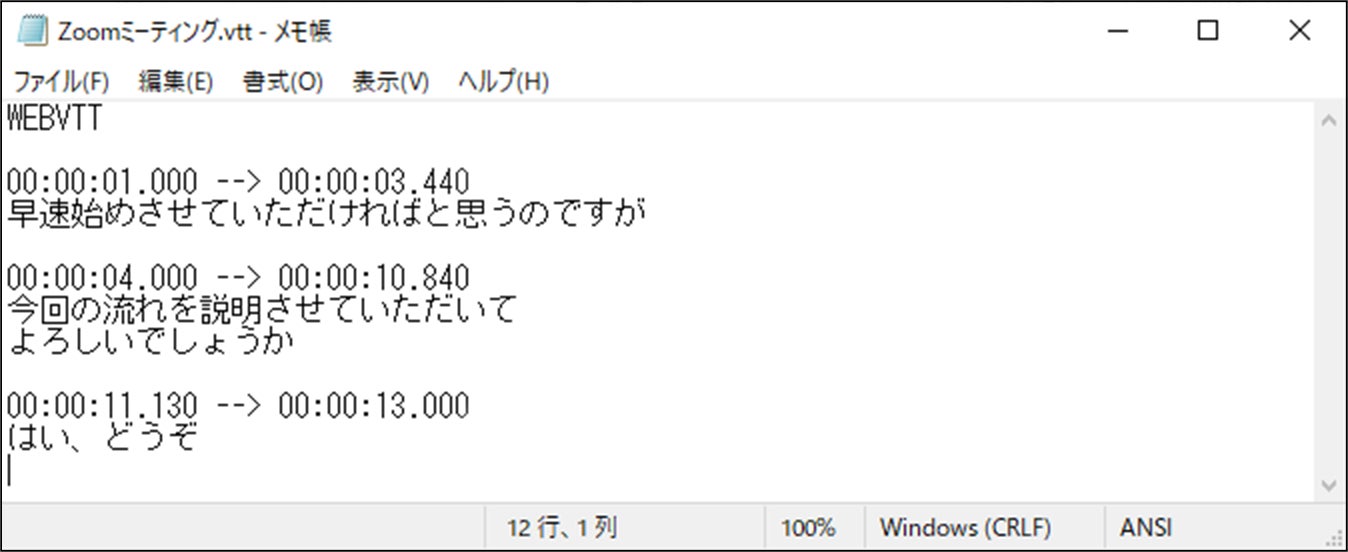 1.ファイルヘッダーは、WEBVTTというキーワードで始まる