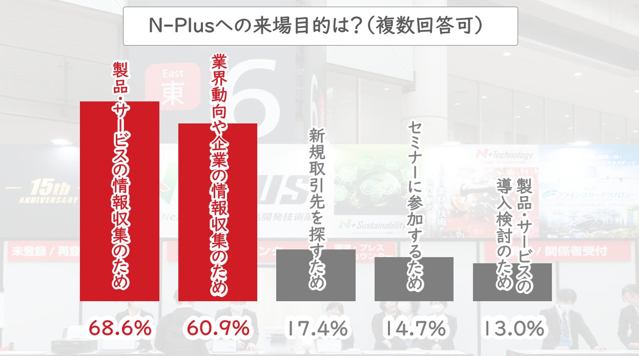 「製品・サービス」や「業界動向」の情報収集を目的に来場されている方が多いようです。