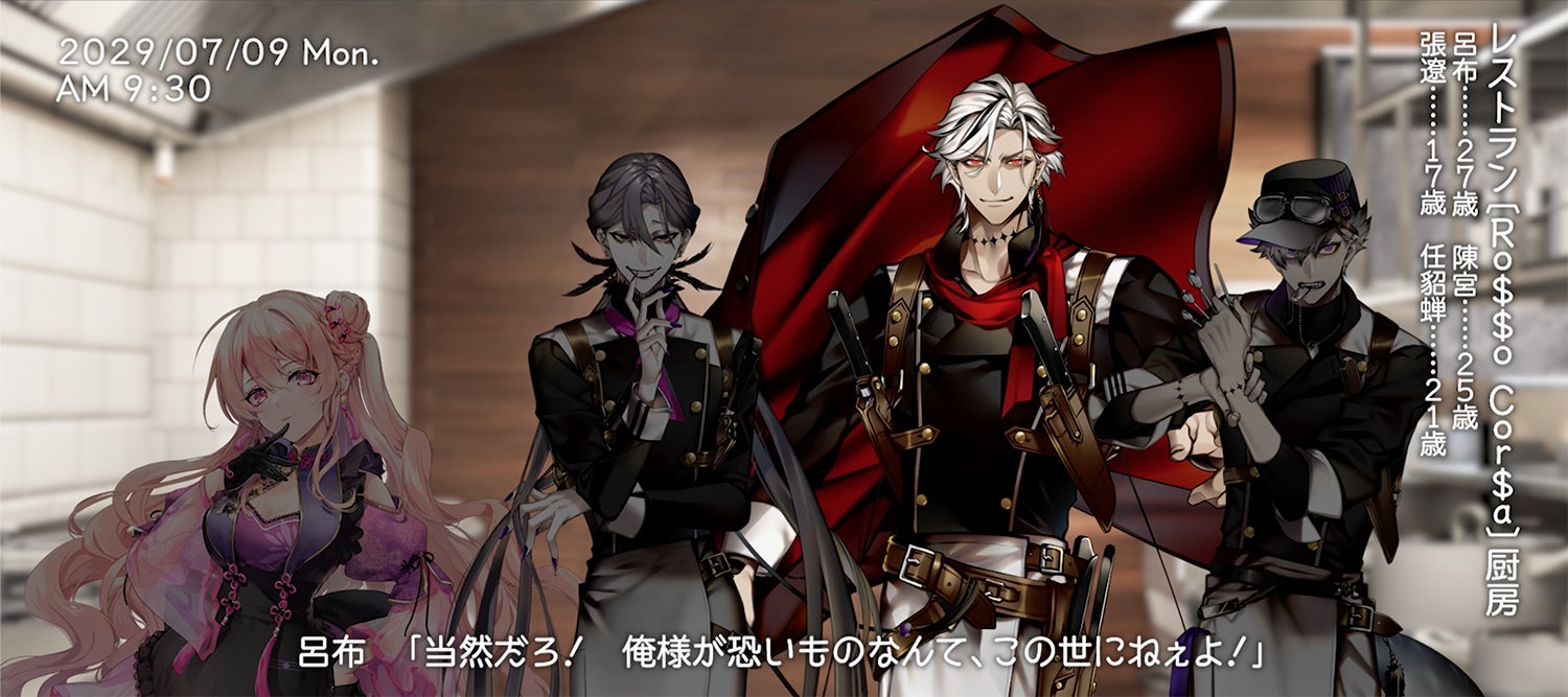 本MVには、チーム【Ro$$o Cor$a】のメンバーに加え、にじさんじ所属バーチャルライバーの静凛が演じる「任貂蝉(CV.静凛)」も登場し、4人の深い(?)関係性が垣間見える「ドラマパート」も収録! ドラバイ世界で恐れられる存在で、威厳のある呂布が、恐れるのはなんと、あの○○!? 何度でも見たくなる、必見の内容です! ぜひ、公開中の主題歌『Delicious Bite』や他キャラクターソングMVと併せてご覧ください!