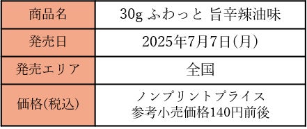 コラボ商品の第二弾となる『ふわっと 旨辛辣油味』は、新潟県産米を100%使用しえびを練りこんだ生地に、辛さの中に旨みを感じる味付けで本格的な辣油の味わいを表現しました。ふわっと軽くサクッととろける食感と旨辛な唐辛子の香ばしさが食欲をそそる、暑い夏にぴったりな旨辛スナックに仕上げました。