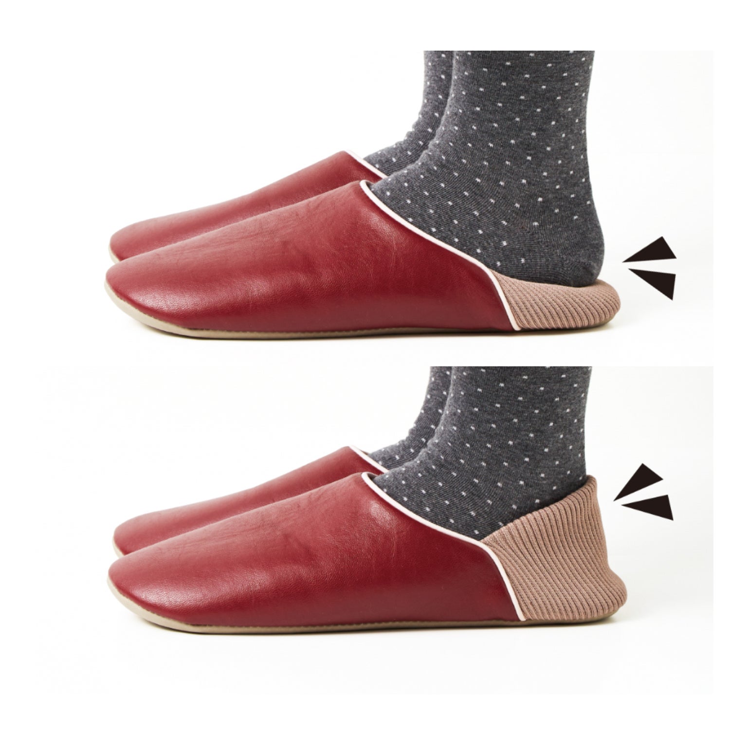 左右がないデザインなので、非常時に慌てていても左右を気にせずサッと履けます。