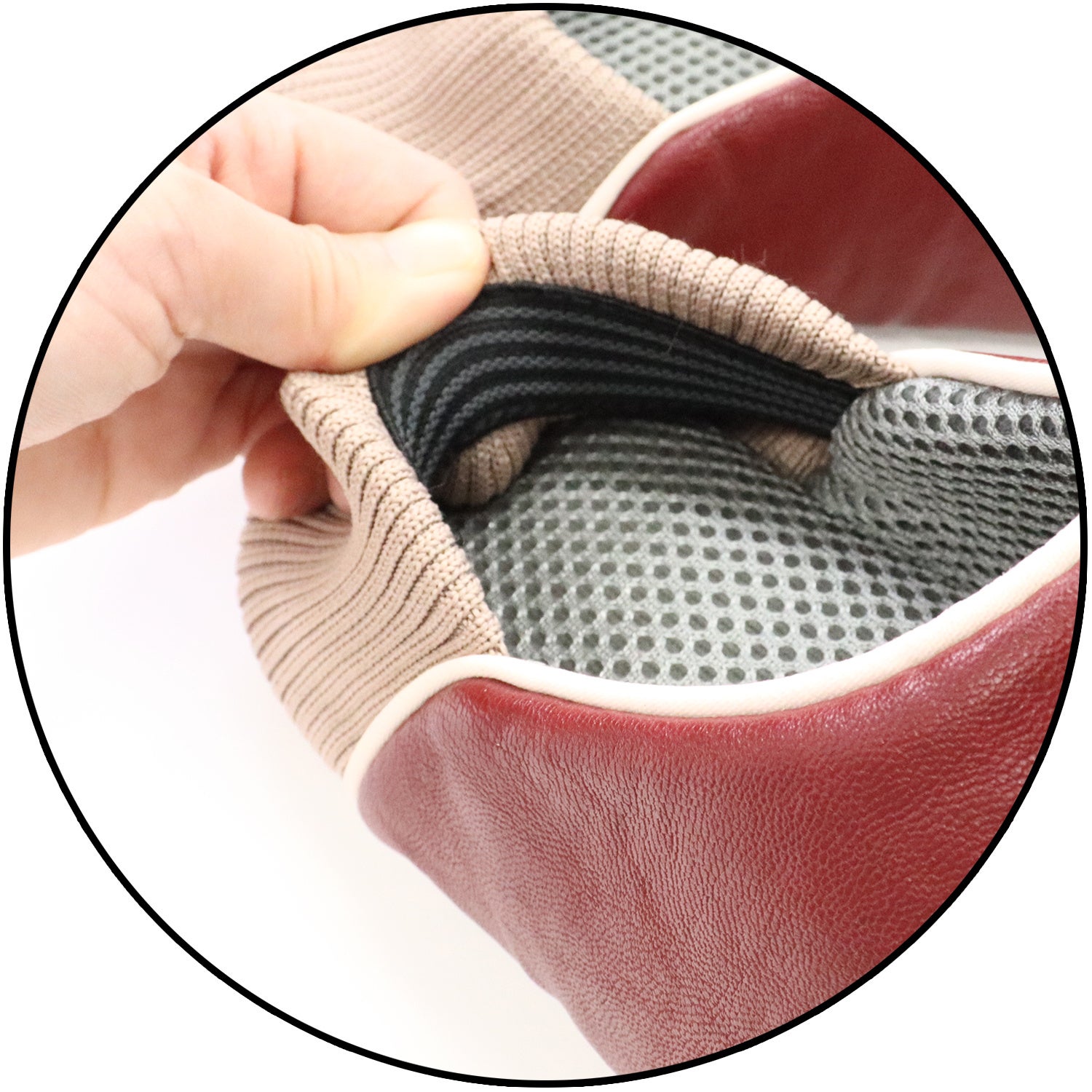 かかと部分はリブ素材で伸縮性があるのでかかとのホールド感があり、