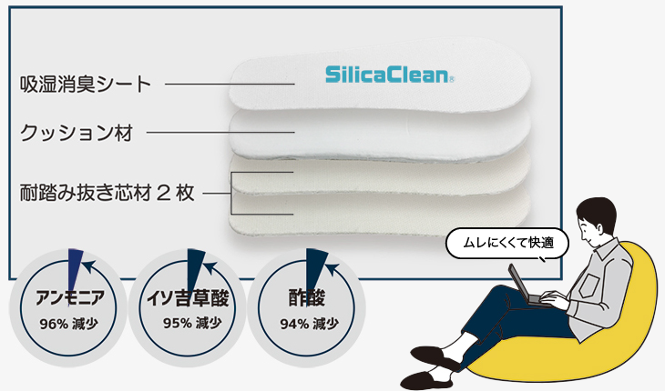 吸湿消臭効果のある特殊なシート(シリカクリン®)をインソールに使用
