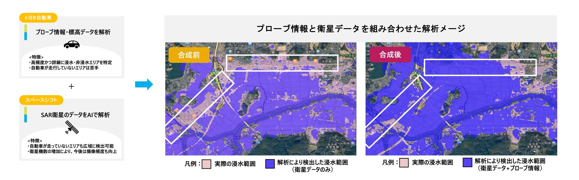 「衛星データ」×「車両走行データ」を組み合わせ、水害対策に貢献 スペースシフト、トヨタ自動車と開発した技術を展示会でお披露目