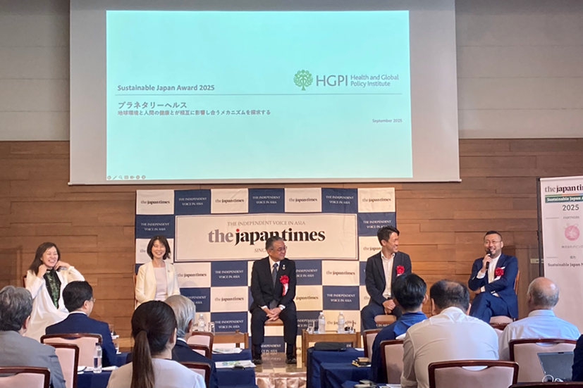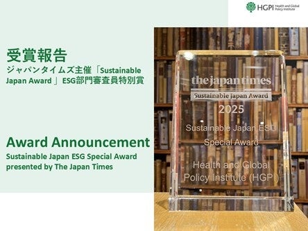 特定非営利活動法人日本医療政策機構(HGPI: Health and Global Policy Institute)(事務局:東京都千代田区、代表理事:乗竹 亮治)は、株式会社ジャパンタイムズが主催する「Sustainable Japan Award 2025」のESG部門において審査員特別賞に選定されました。また、「Sustainable Japan Day」として9月18日に、表彰式および受賞企業・団体・自治体によるパネルセッションが国際文化会館(東京都港区)にて開催されました。当機構は、本受賞を糧に、プラネタリーヘルスプロジェクトをはじめとする健康・医療政策分野において、より一層の貢献を目指して活動してまいります。