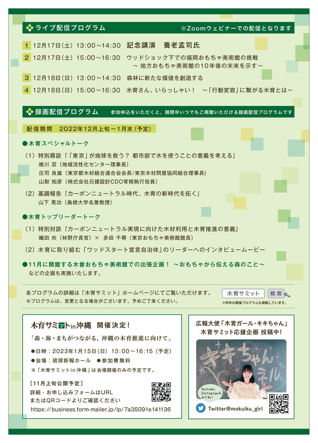 後援:一般財団法人 地域活性化センター/公益財団法人 森林文化協会/日本木材青壮年団体連合会/
