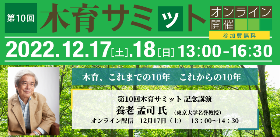 記念講演に養老孟司氏が登壇。「木育」の基本のキから、川上から川下まで最先端の活動事例が学べる木育サミット【12月17、18日Webセミナー開催】