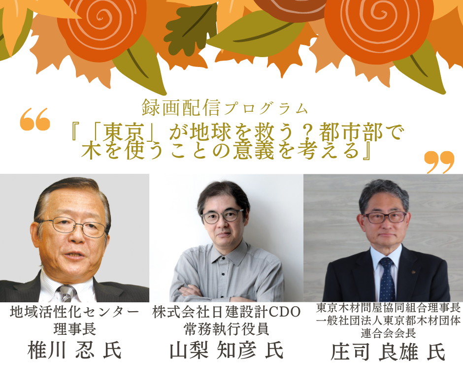 (1)【特別鼎談】『「東京」が地球を救う?都市部で木を使うことの意義を考える』