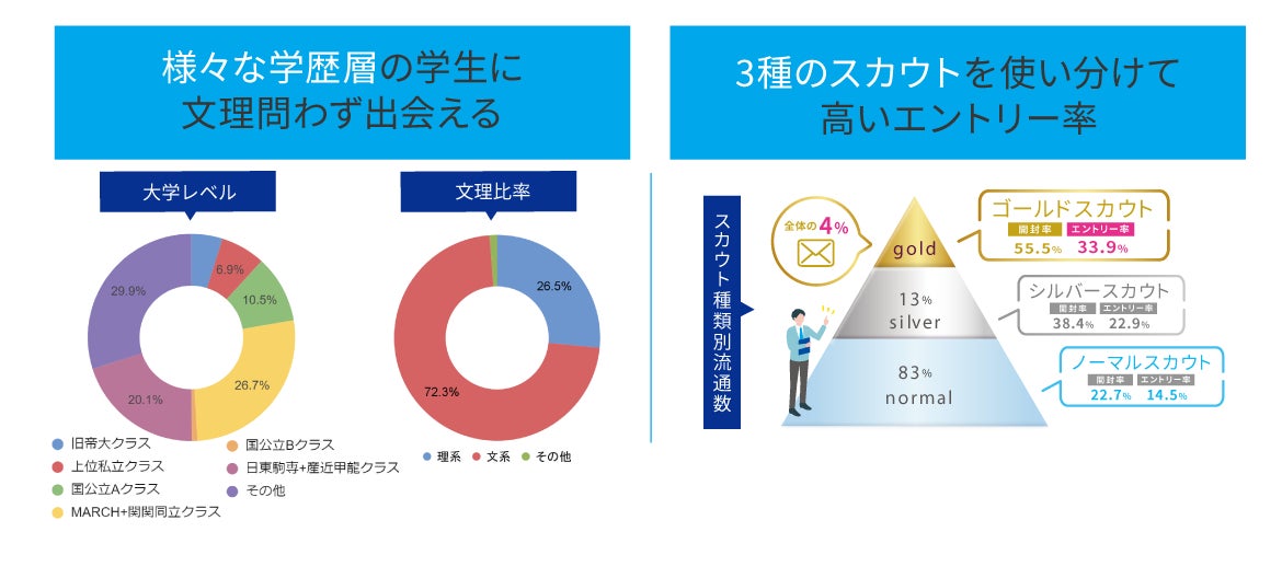 この2つの特徴により、相性の良い学生へ高い熱量を込めたスカウトを送ることができ、採用成功を実現できます。