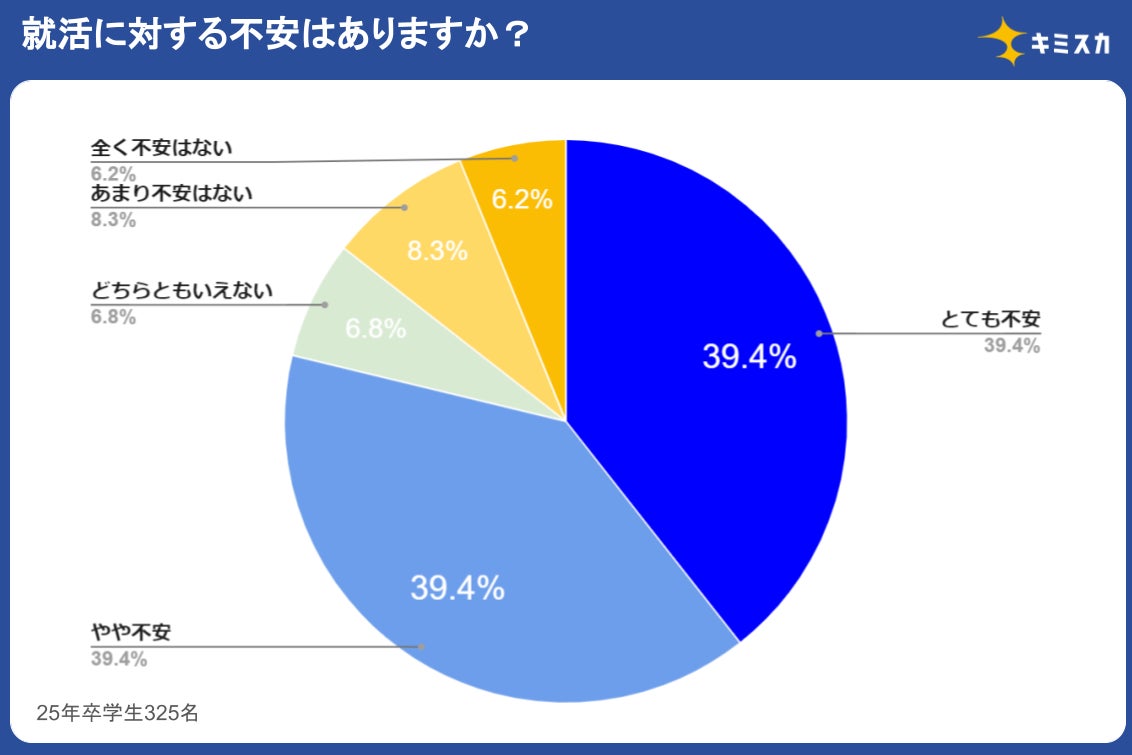 25年卒学生325名のうち、就活に対する不安はありますか?という問いに対して「とても不安・やや不安」と回答した学生は78.8%にのぼった。