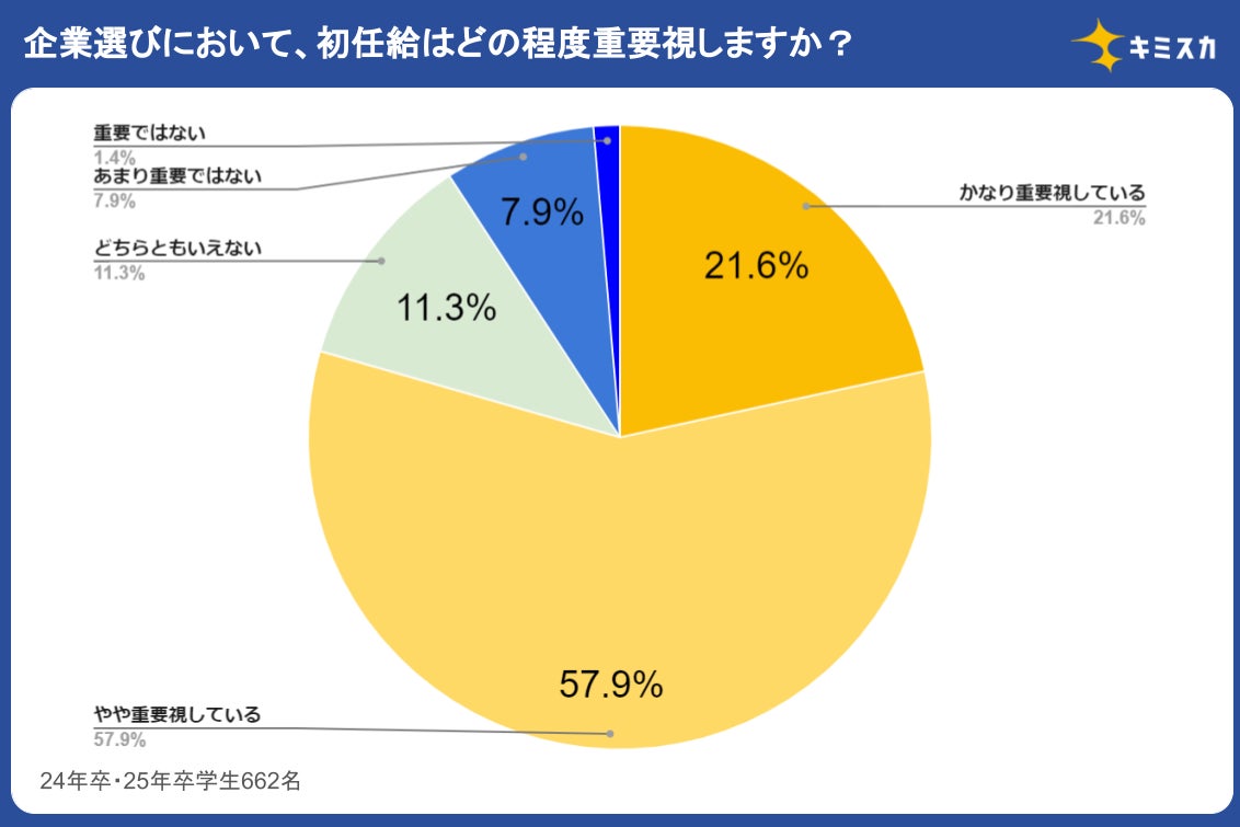 企業選びにおいて初任給を重要視している学生は、79.5%を占めていた。