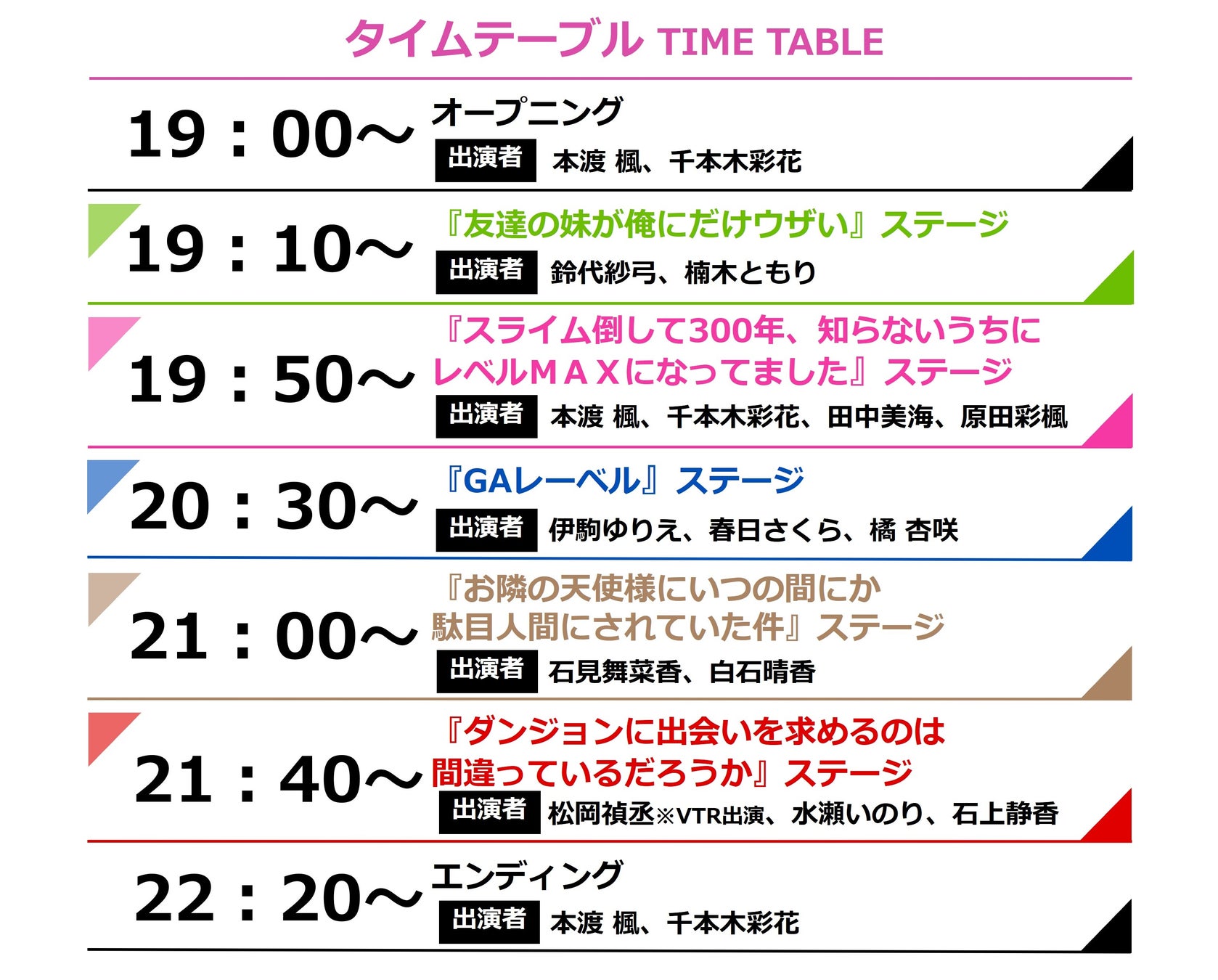 総合MCには「ガンガンGAちゃんねる」でお馴染みの本渡 楓さんと千本木 彩花さんを迎え、下記のタイムスケジュールで開催します。人気タイトルの最新情報が一気にチェックできるこの機会をどうぞお楽しみに。