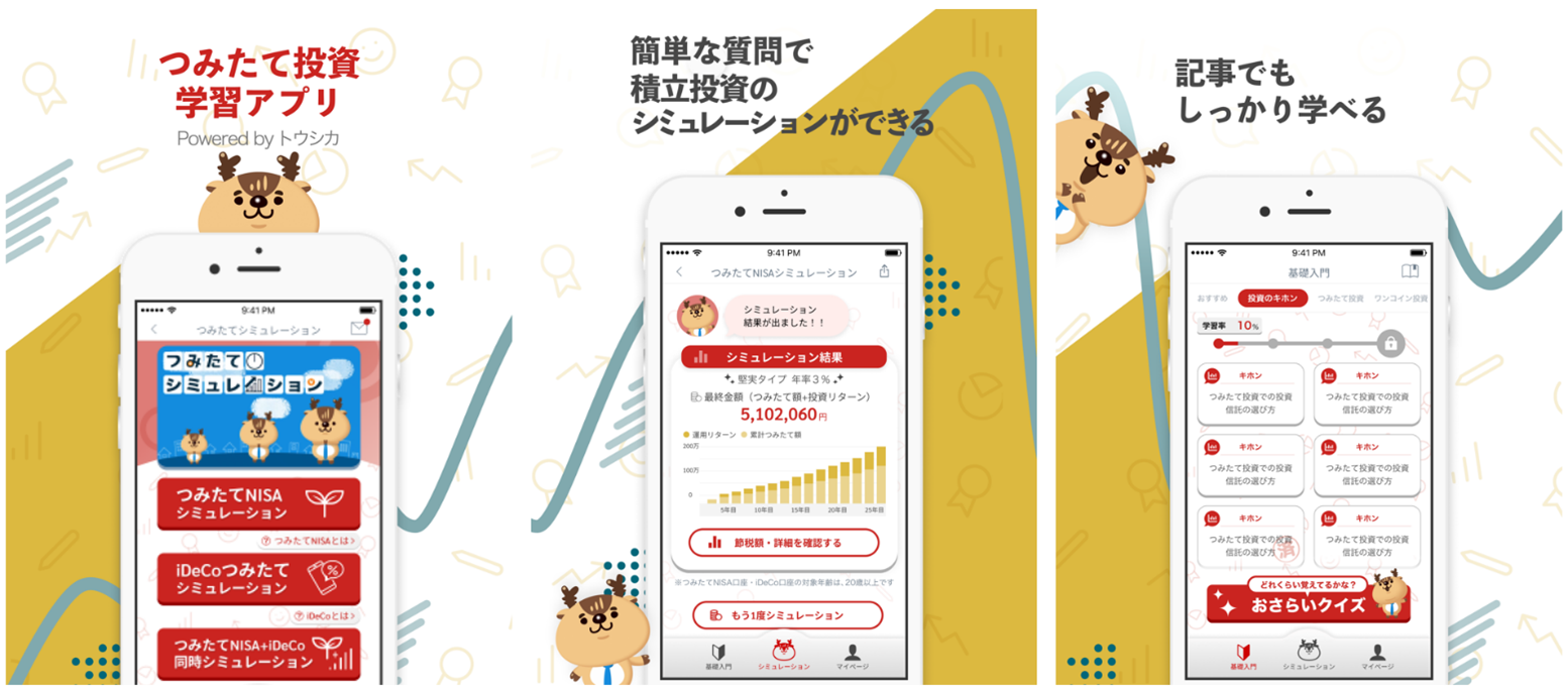 「つみたて投資学習アプリPowered by トウシカ」は、累計70万インストール突破、前年同月比2.5倍ペースでインストール数が伸びている大人気アプリ「トウシカ」をベースとしています。