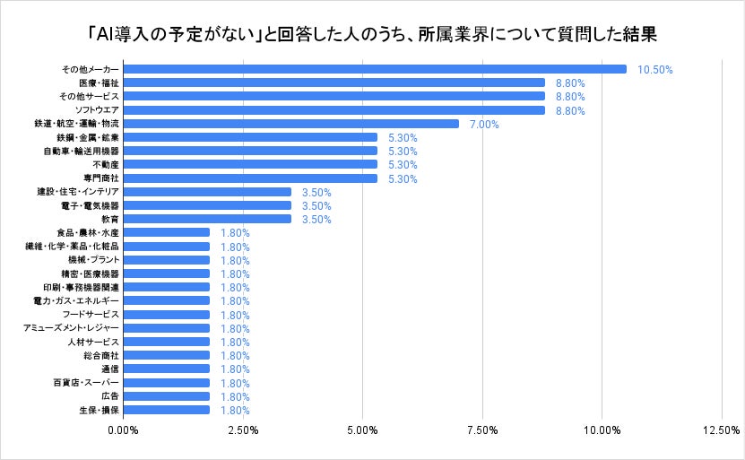 「生成AIを業務に導入していない」と答えた業界は「医療・福祉」「ソフトウェア」で特に多い