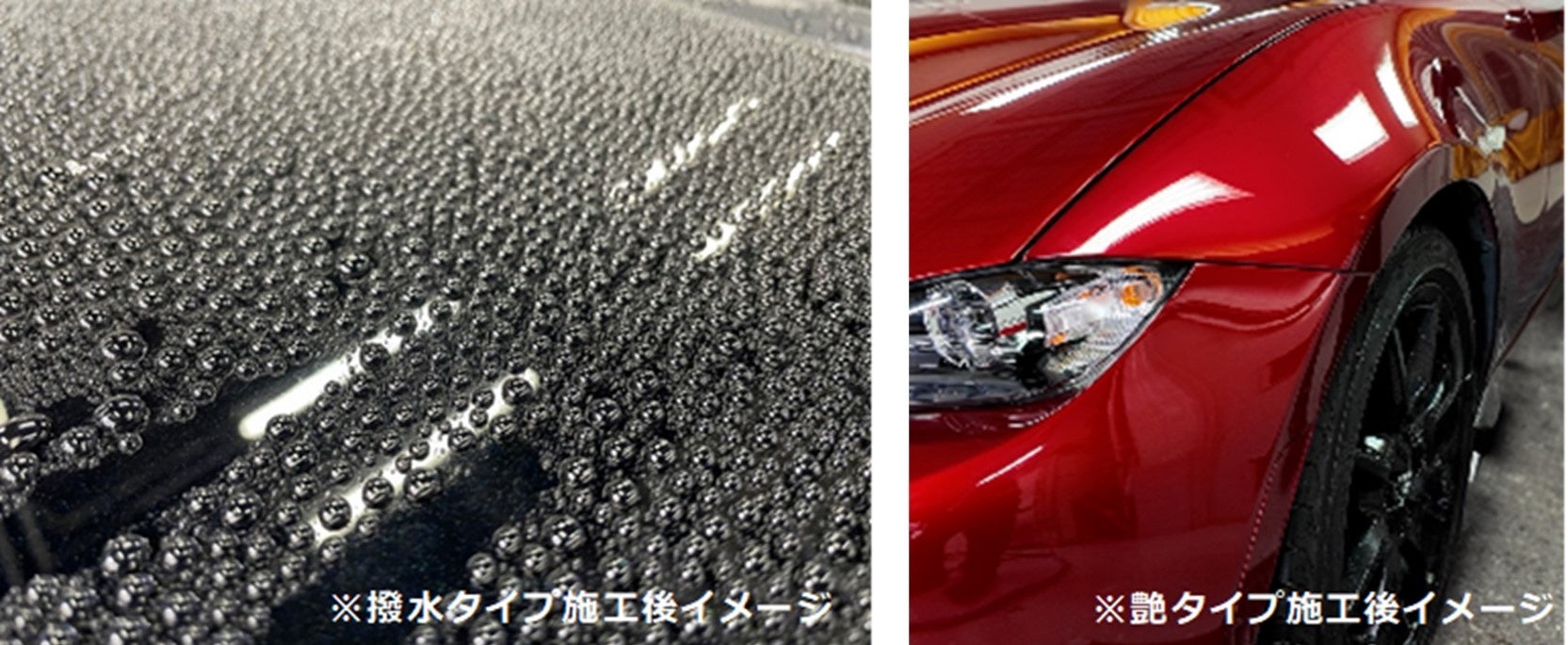 ■「AQ. プレミアムボディコーティング」は、水はじき抜群の「撥水」と、深みのある「艶」の2タイプ
