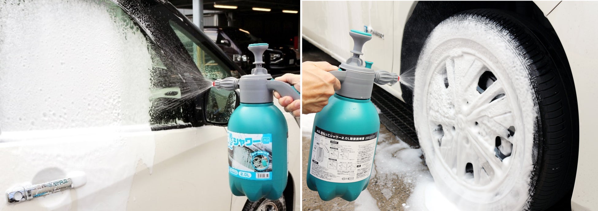 別売のフォームガン「AQ. 泡もっこシャワー」専用に開発したシャンプーです。噴出される濃密な泡はボディに密着しやさしく洗うことが可能です。また、バケツ洗車でもご使用いただけます。液剤は中性、ノーコンパウンドでコーティング施工車にも対応しています。