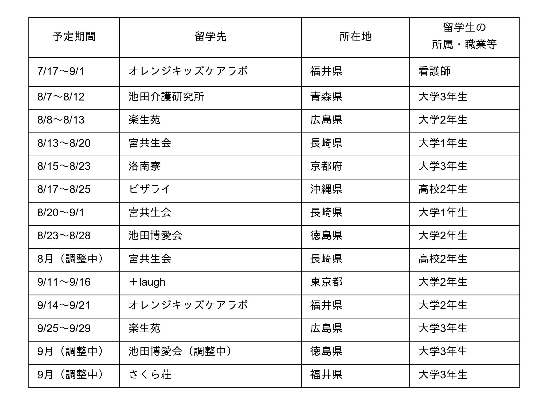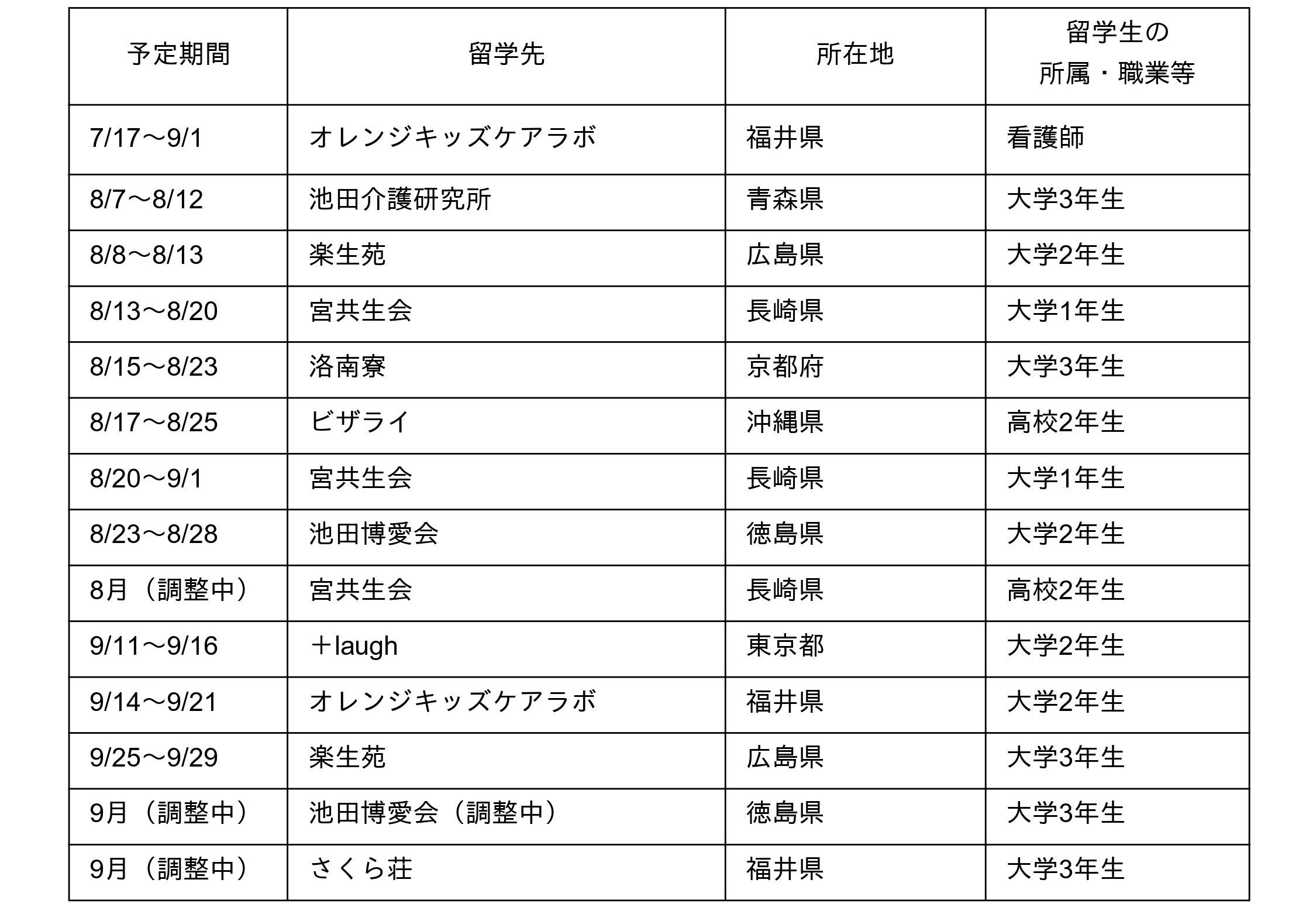 福祉業界が閉鎖的にならざるを得なかったコロナ禍を経て、この夏、14名の学生や社会人が日本各地へ出発します。