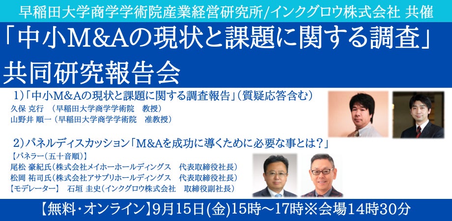 【9/15開催 早稲田大学・インクグロウ共同研究報告会】日本発*「中小M&Aの現状と課題に関する調査」