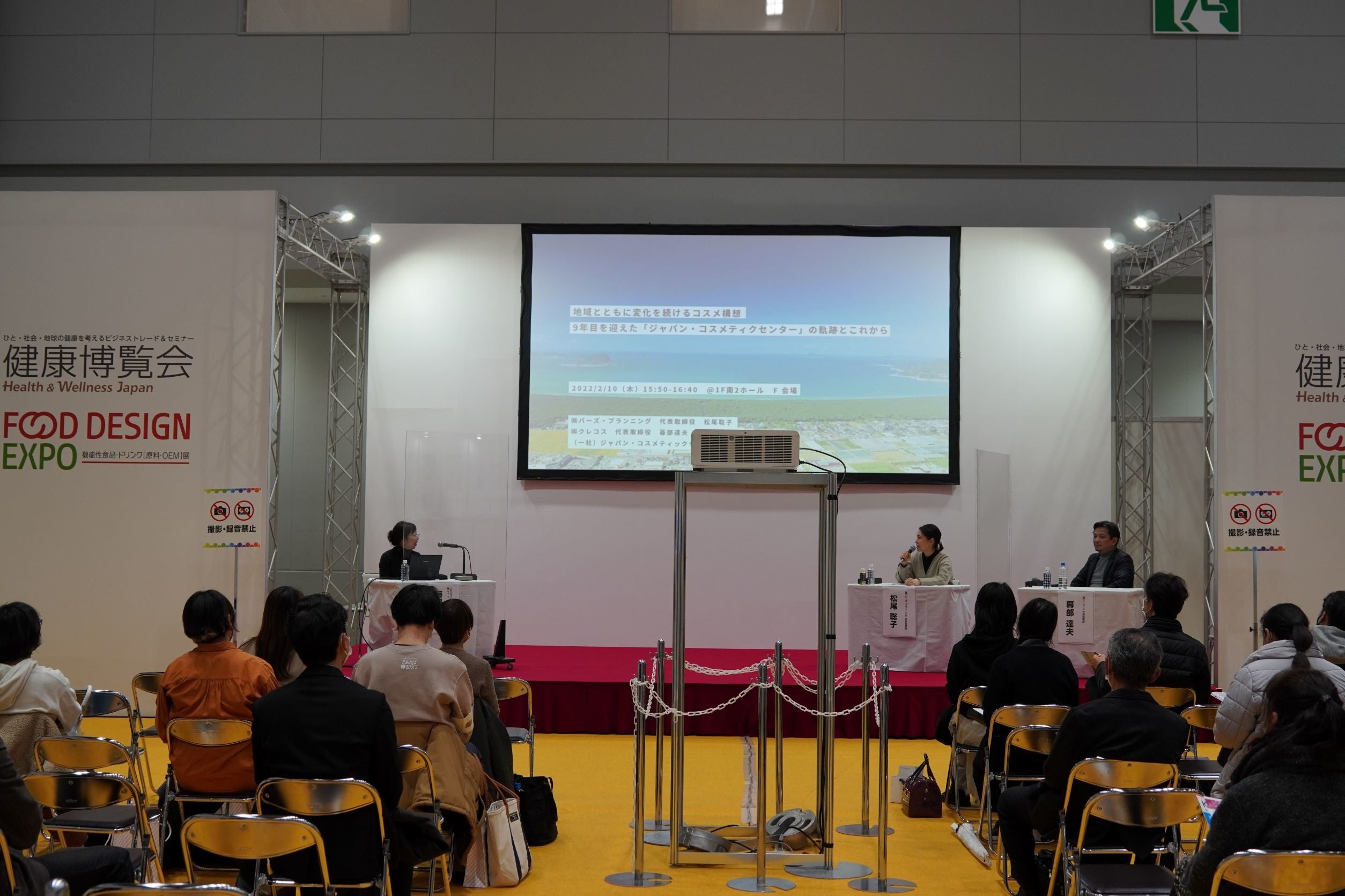 ジャパン・コスメティックセンター(所在地:佐賀県唐津市)は、2022年2月10日(木)に東京ビッグサイトにて行われた健康博覧会の中で、「地域とともに変化を続けるコスメ構想〜9年目を迎えたジャパン・コスメティックセンターの軌跡とこれから〜」と題して、構想から実際の活動について具体例を交えて紹介いたしました。