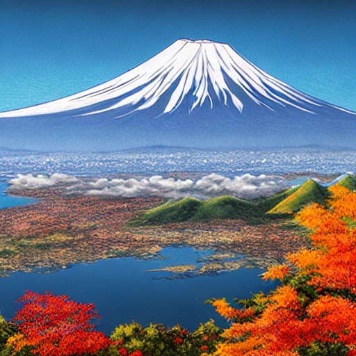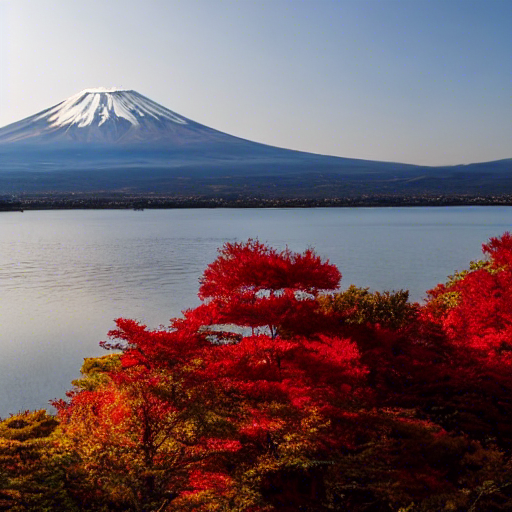 (例)「富士山、湖。周りに紅葉」のテキストを入力して画像生成。