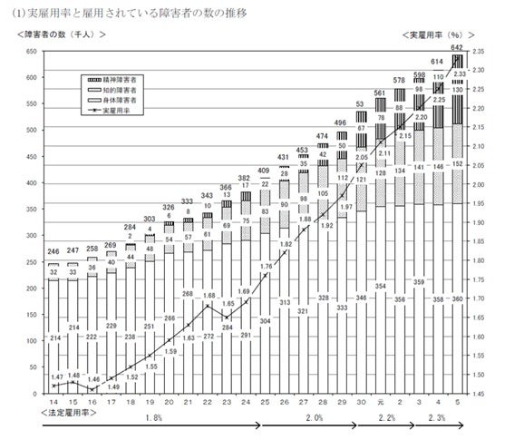民間企業に雇用されている障害者の数は約642,000人。内訳は以下の通りです。