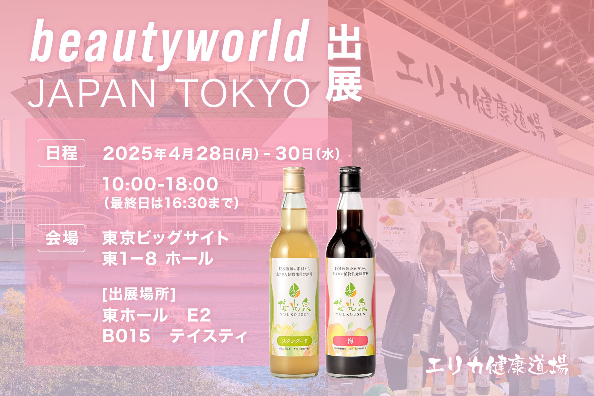ファスティング関連商品の販売と断食道場の運営を行う株式会社エリカ健康道場(所在地:佐賀県佐賀市兵庫北7丁目16-7、代表取締役:北島昭博)は、2025年4月28日(月)から30日(水)に東京ビッグサイトで開催される「ビューティーワールドジャパン東京」に出展いたします。本イベントでは、断食のプロが開発した酵素ドリンク「優光泉」の試飲と、オリジナル酵素ドリンクの受注生産(OEM)サービスをご提案いたします。