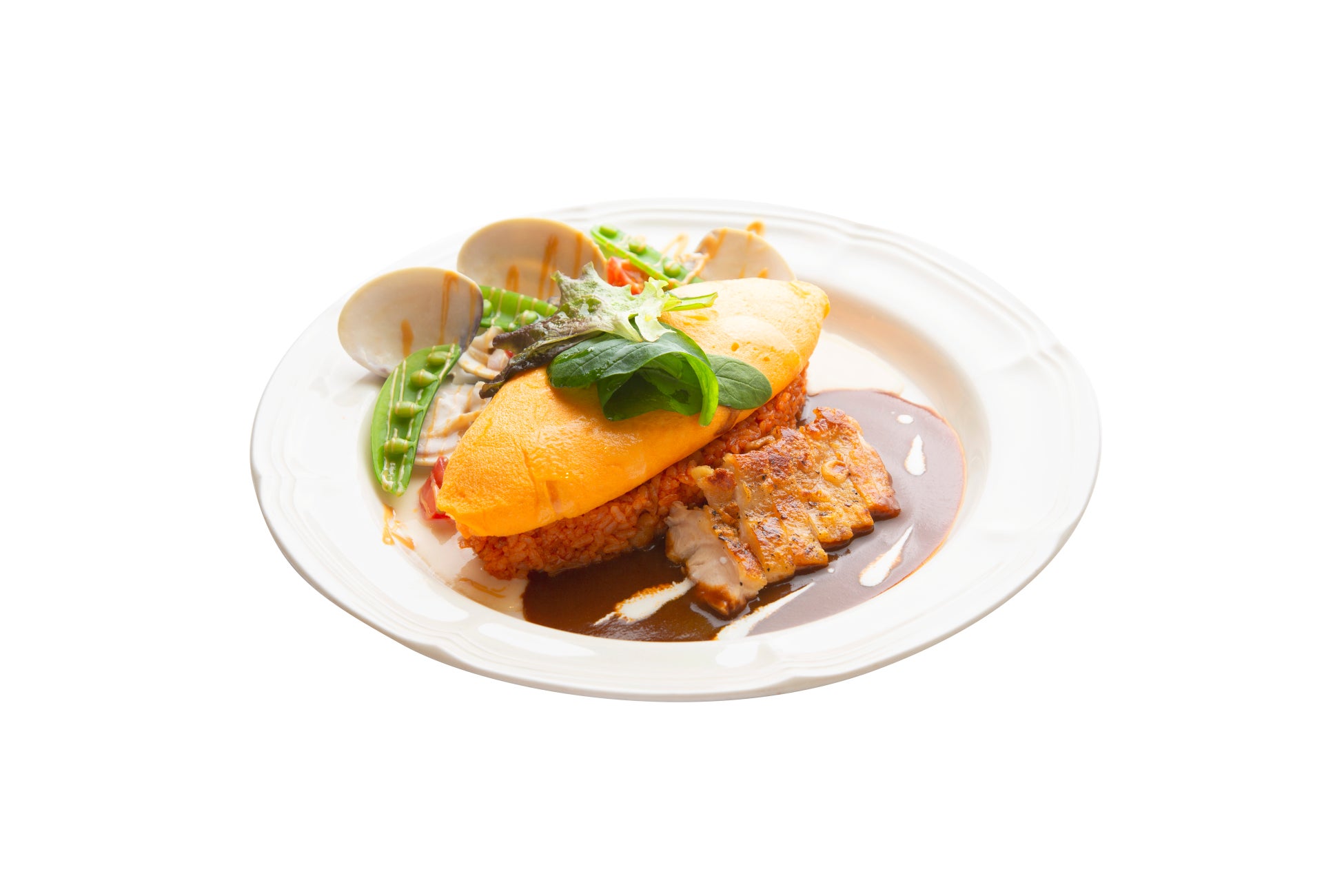 地元栃木県の卵、鶏肉、お米を使用。トマトケチャップの使い方にこだわり、香ばしいチキンライス、チーズ入りのふわとろのオムレツ、まろやかなトマトクリーム、パリッと焼き上げたチキンで華やかな一皿に仕上げたオムライス。
