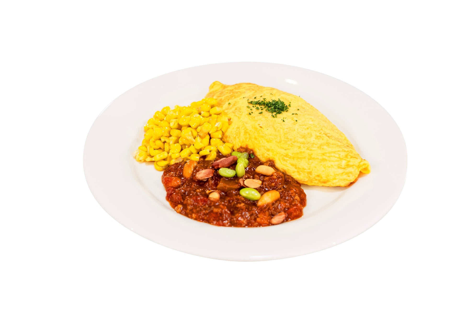 芽室町のスイートコーンと十勝ボロネーゼソースのマッチングを楽しむことができる十勝のご当地オムライス