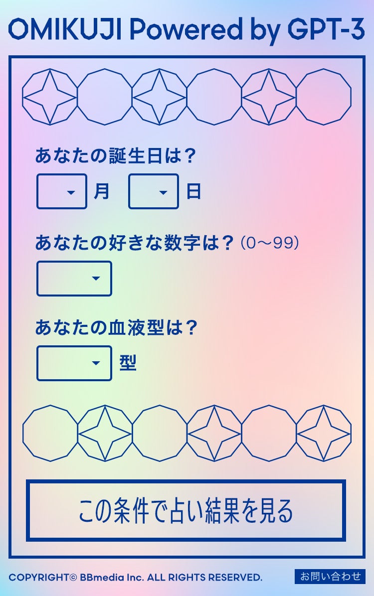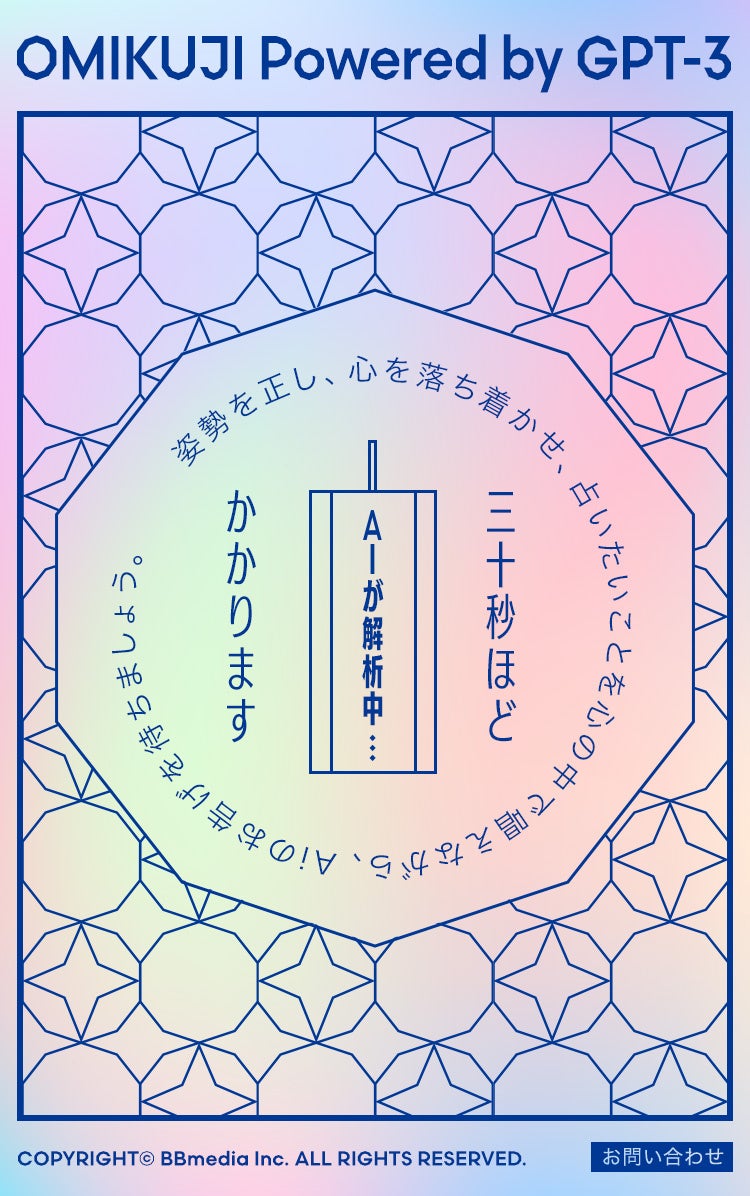 『OMIKUJI Powered by GPT-3』デモ版 : https://www.bbmedia.co.jp/wsd/omikuji/