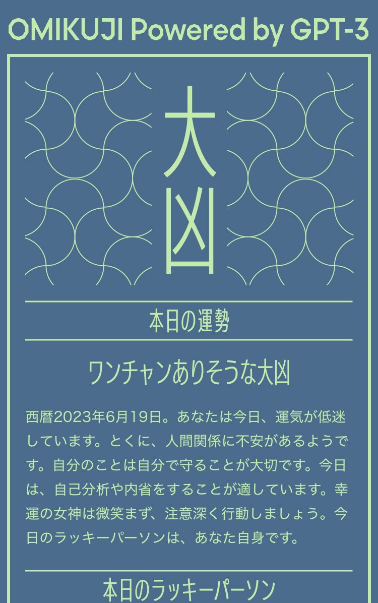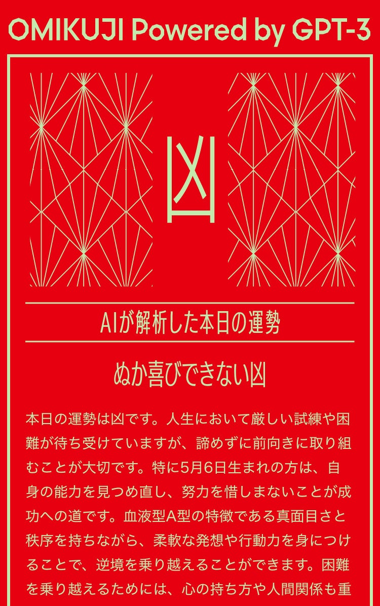 自動生成されるAIおみくじで、常に独自の結果を提供 『OMIKUJI Powered by GPT-3』 とは