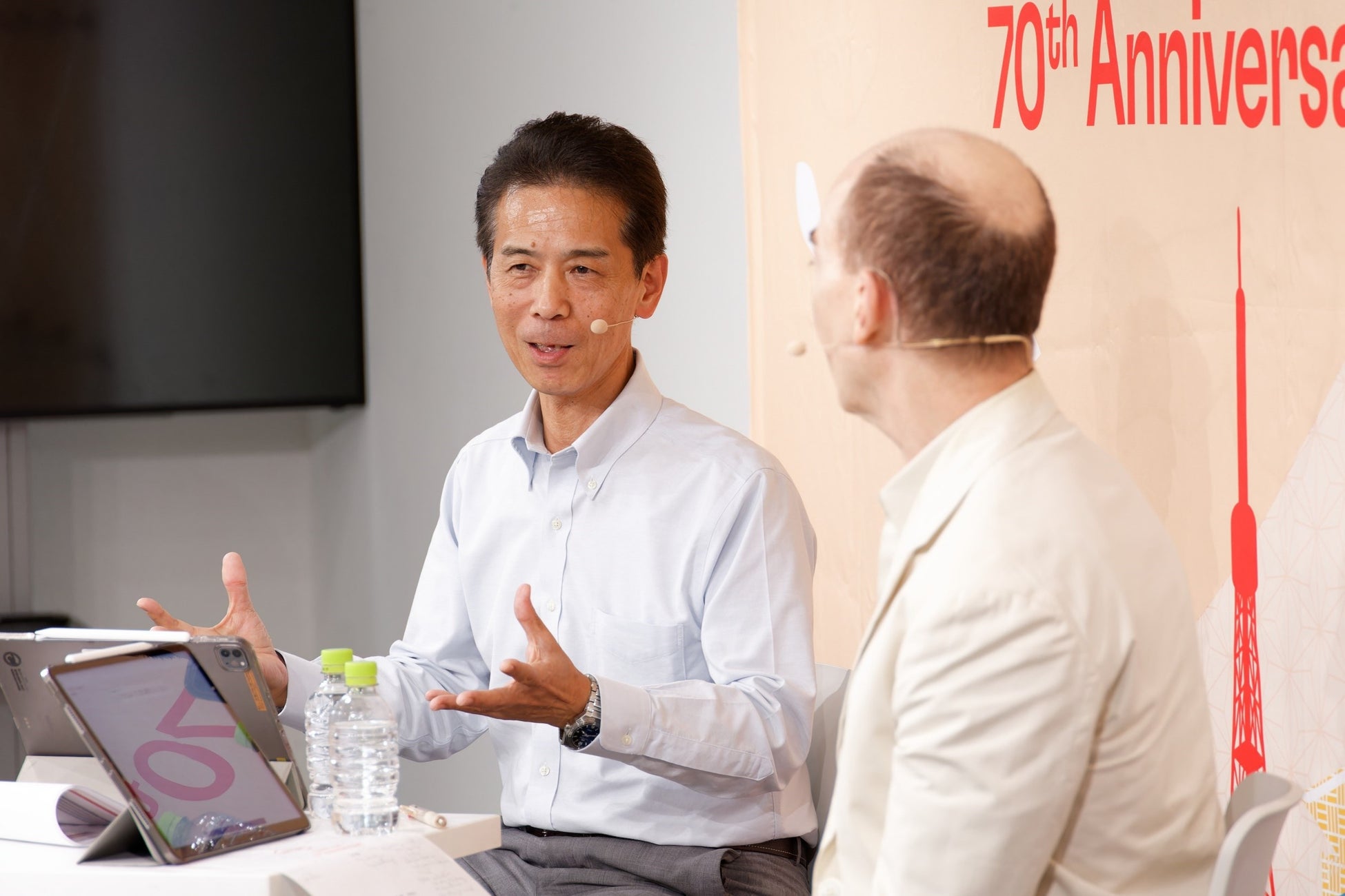 ヘンケルジャパンでは、日本進出70周年を記念したイベントを、2024年9月30日(月)、東京・天王洲にある東京本社の「ASK Academy TOKYO」で開催しました。世の中的にも会社としてもDEIの重要性が増す中で、社員がDEIや国際性に関して新たな学びやインスピレーションを得る機会とするべく、ゲストには、長らく日本で日本文学の研究を続け国際的なバックグラウンドを持ちながら、DEIをはじめ幅広い分野に精通し近年ではテレビでコメンテーターとしても活躍するロバート キャンベル氏をお招きし、代表取締役社長の浅岡とのトークセッションを行いました。