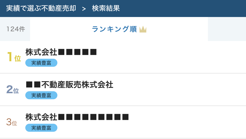同じ条件の物件取り扱い実績件数の多い不動産会社をピックアップします。