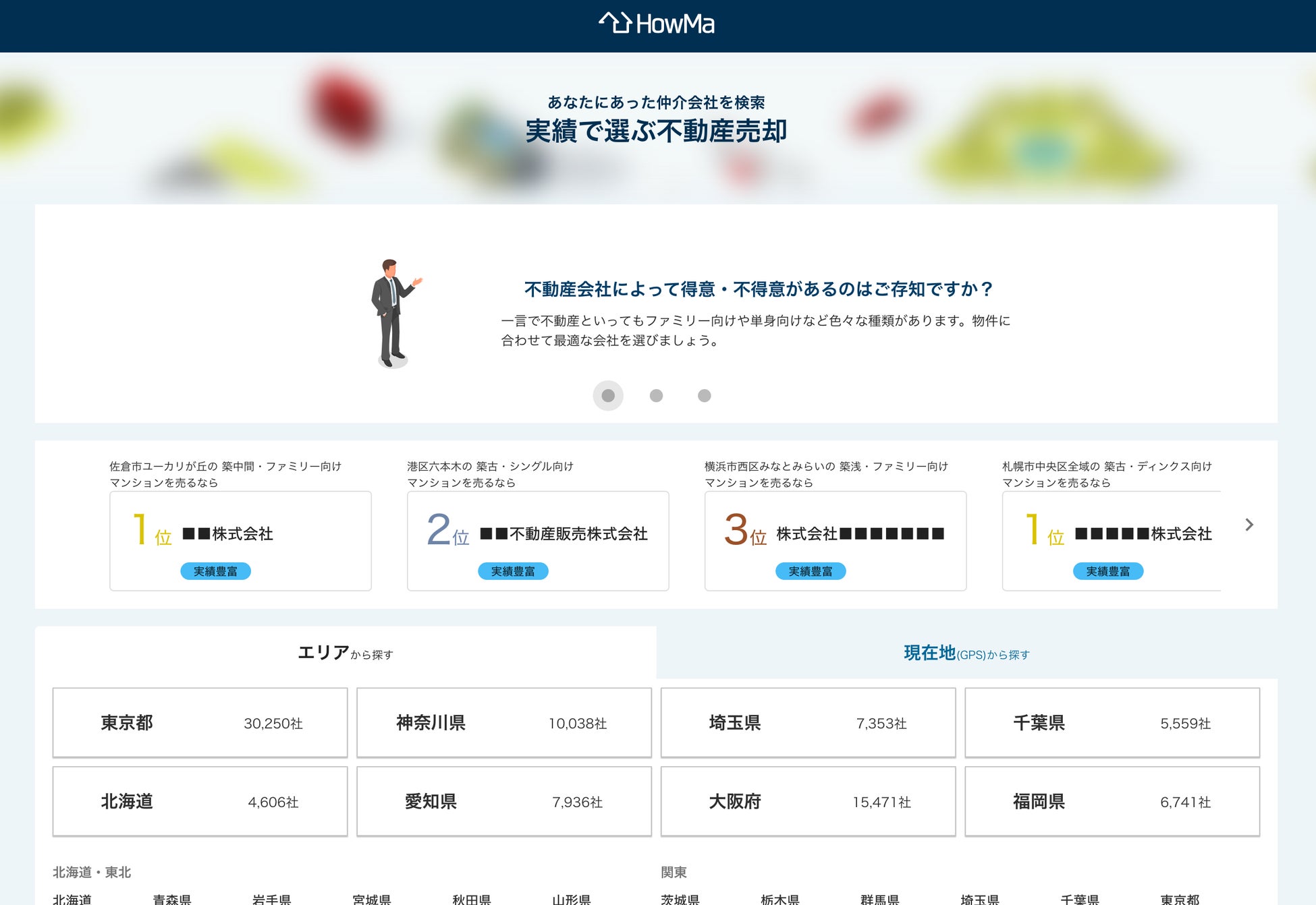 不動産のAI査定サービス「HowMa」(ハウマ)を運営する株式会社コラビット(本社:東京都港区、代表取締役:浅海剛)は、全国の不動産会社約12万社のデータベースから取引実績を元に、マンションの売却時に物件の特徴に合う不動産会社を推奨する機能を2022年3月30日(水)より追加します。(https://www.how-ma.com/realtors/)物件の取り扱い実績を元に不動産会社を推奨するサービスは日本で初めてです。