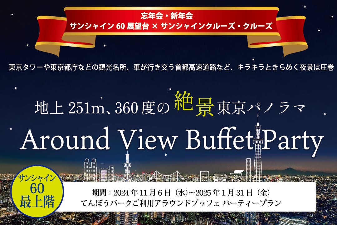 【忘年会・新年会】まだ間に合う!3大特典付きの直前プランがスタート。池袋60階の展望台でフレンチブッフェのお得な絶景パーティーを
