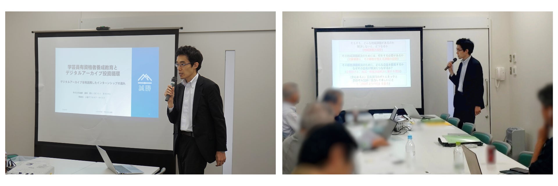 本研究の開始に先立ち、誠勝 取締役の寳德 真大(以下:寳德)は、2024年9月14日(土)に「地域産業研究会(※2)」にて、「学芸員有資格者の養成教育とデジタルアーカイブ投資循環」と題した学術発表を主宰しました。