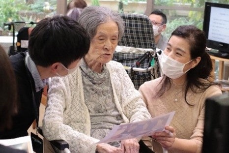 ご入居者様がアート作品を鑑賞し、普段ホームで関わっている介護職員ではないファシリテーターの問いかけによって感じたことや考えたことを、自由にお話していただく対話型鑑賞。普段知りえないご入居者様の感性や価値観が引き出され、介護職員がその方の心を揺り動かしていることや心のありかを知っていくことで、その方のありたい姿・状態に近づく手掛かりとなることを目指しています。
