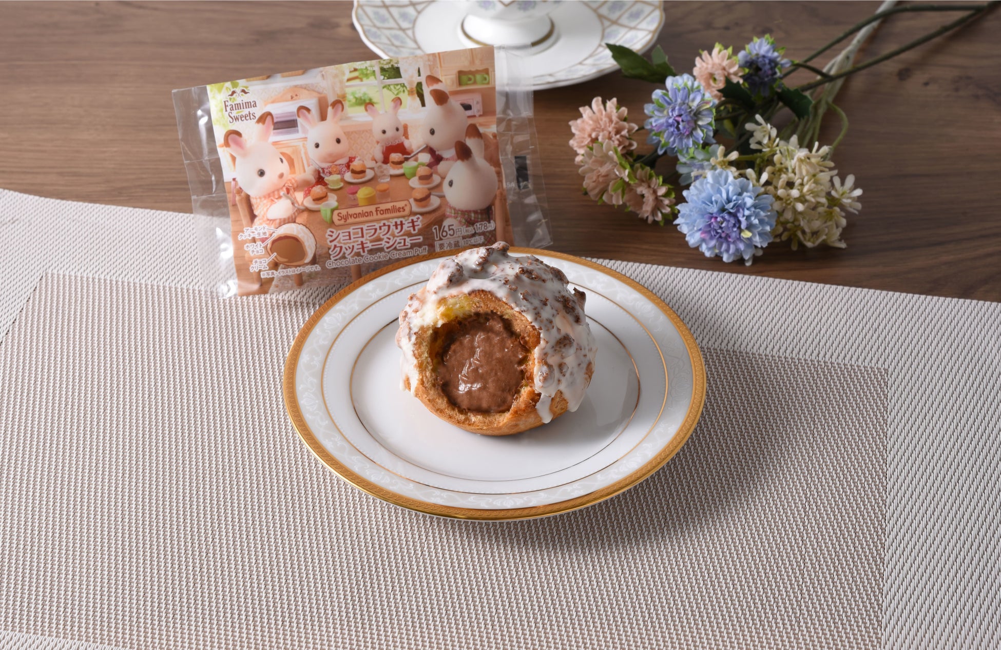 【内容】なめらかなショコラカスタードクリームを入れたクッキーシューです。クッキー生地にアーモンドを入れることで、食感と風味にアクセントをつけ、ショコラウサギをイメージし全体をホワイトチョココーチングで覆いました。