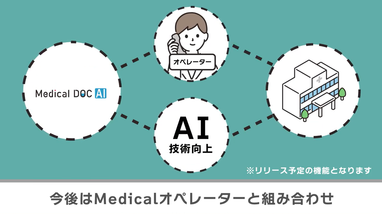 さらに、今後はchatbotでの対話をきっかけにユーザーの医療に関するニーズを把握し、オペレーターとの組み合わせによって、より適切な医療情報、医療機関をユーザーに提供するサービス機能のリリースも予定しております。
