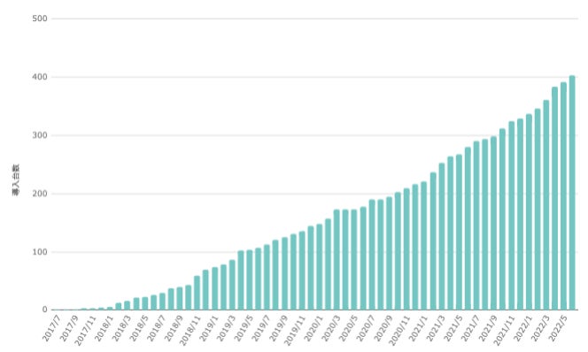 2017年の販売開始から約4年半で累計400台の設置に至りました。(下図)。