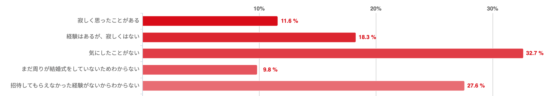 しかし、「結婚式に招待してもらえなくて寂しく思った経験があるか?」という質問では、