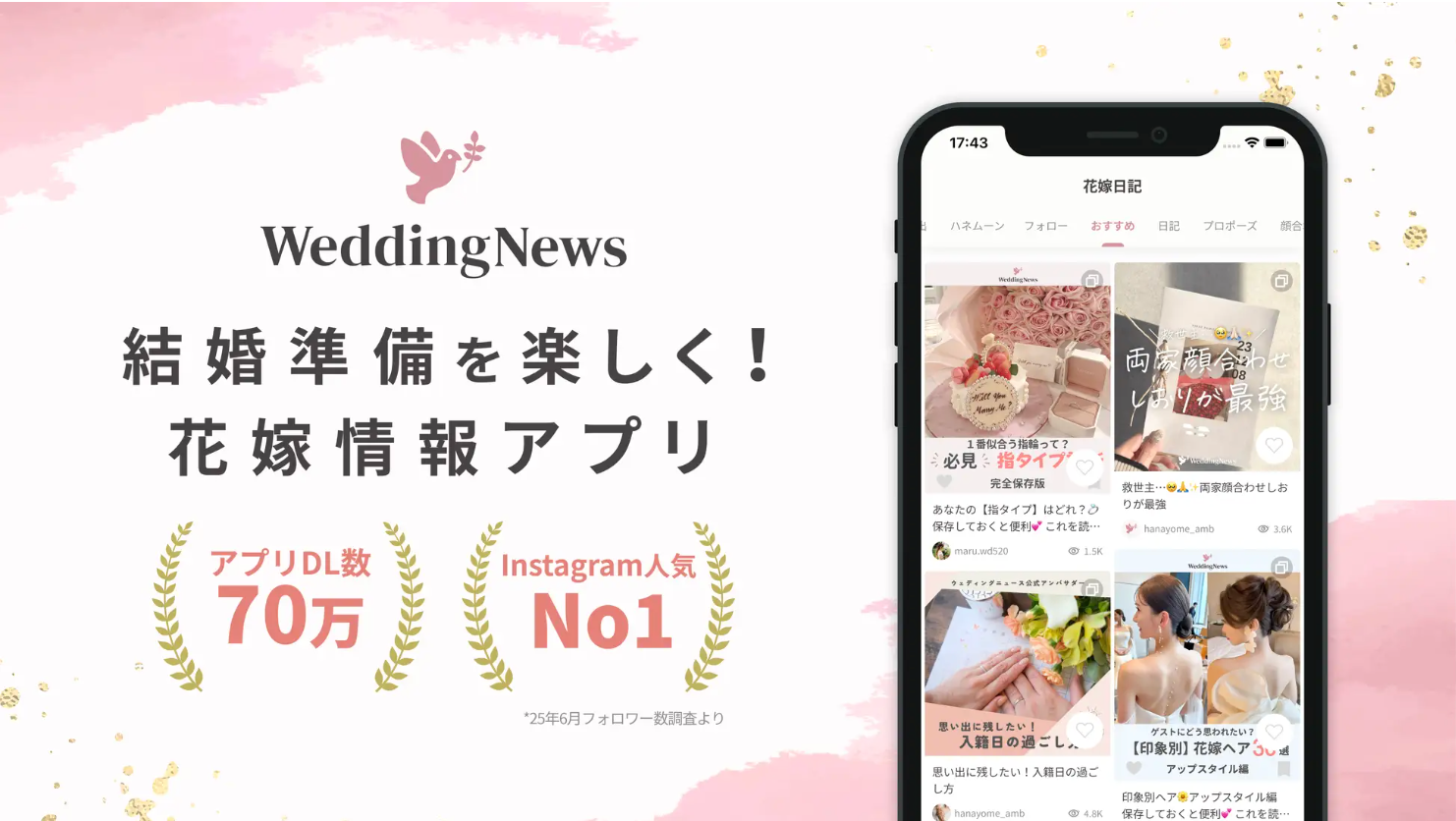 ウェディングニュースは、Z世代に支持される結婚準備アプリです。