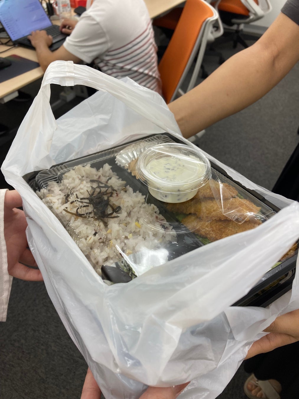 ・会社への配達してくれるので、天候に左右されず快適に食事できるのが嬉しい。