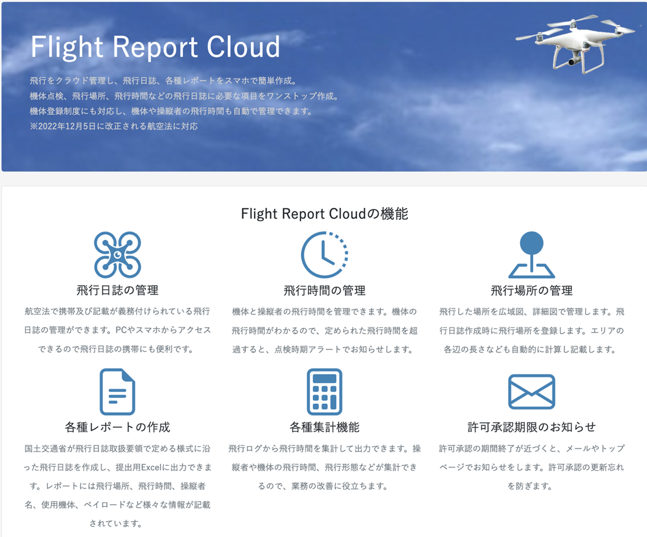 本日施行の改正航空法に準拠したドローン飛行管理システム「Flight Report Cloud」のリリース及び提供を開始