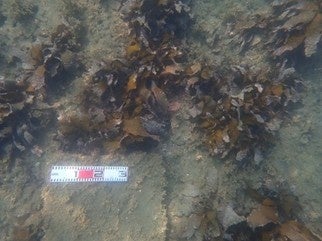 千葉県の内房においてカジメ・アラメを対象とし、本実証は数回実施されました。2024年10月に水深約3mの岩盤に対して本手法を行った地点について2025年8月に追跡調査を行ったところ、1平方メートルあたりのアラメの密度は、無散布地点に比べ散布地点では1.78-6.4倍と高い数値となりました。同地点では周囲にアラメが確認されていることから散布とは関係ない天然由来のアラメもあるものの、本手法の効果があったものと考えられます。