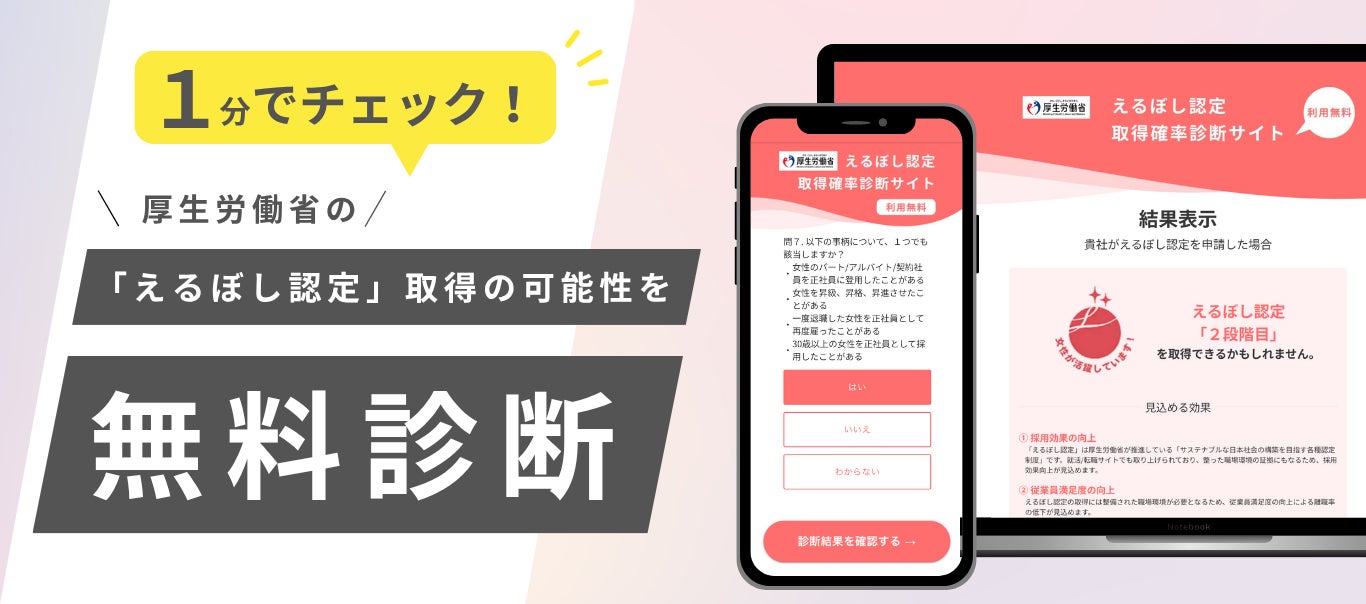 【無料診断】厚生労働省の「えるぼし認定」取得の可能性を1分でチェック