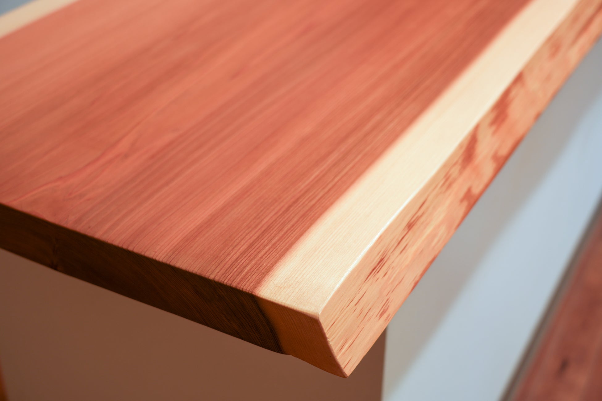 施設エントランスカウンター:岐阜県産スギの一枚板
