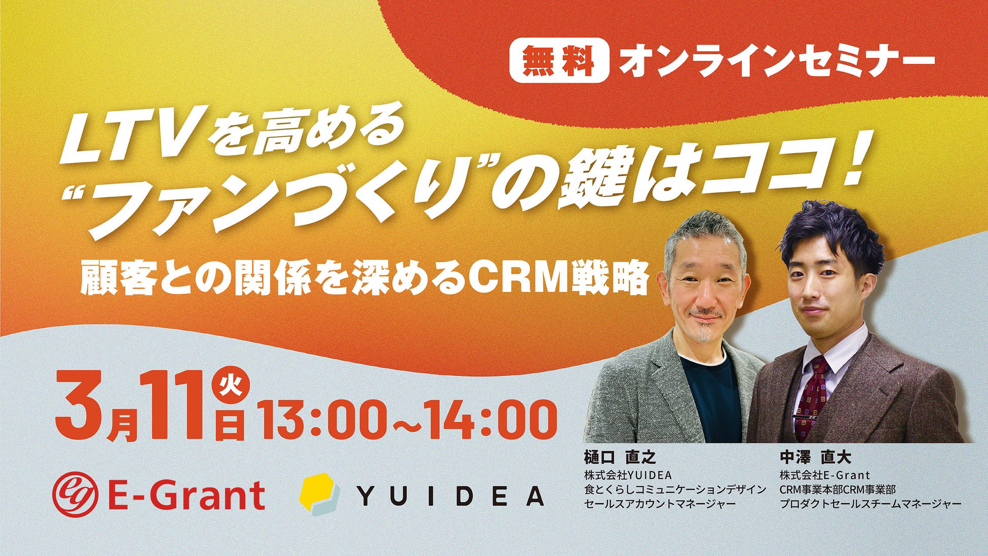 3/11【E-Grant×YUIDEA】LTVを高める“ファンづくり”の鍵はココ!顧客との関係を深めるCRM戦略