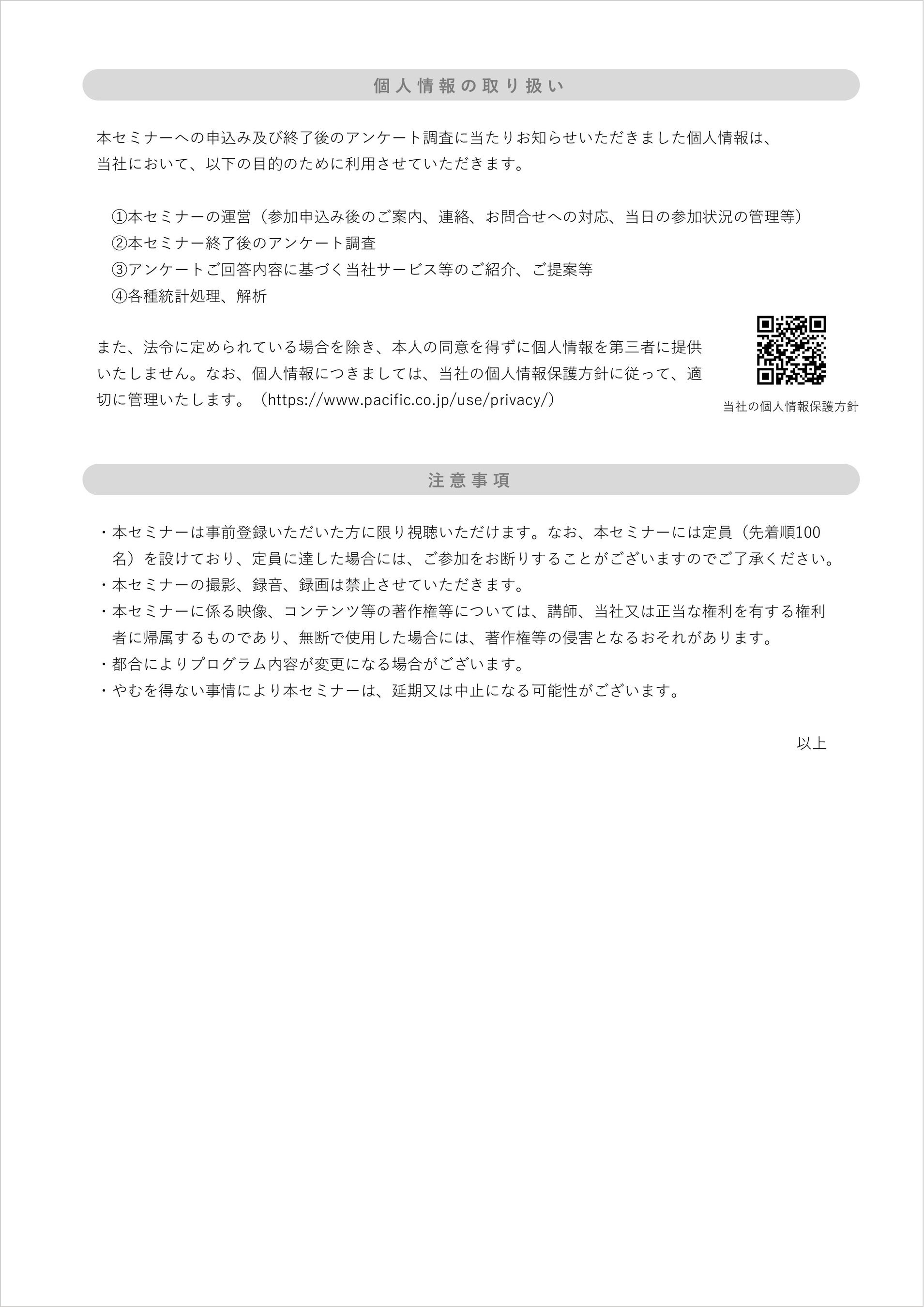 事前申込用URL: https://pacific-co-jp.zoom.us/webinar/register/WN_Dqv6dKKTQLmaiQnLw9kjEg