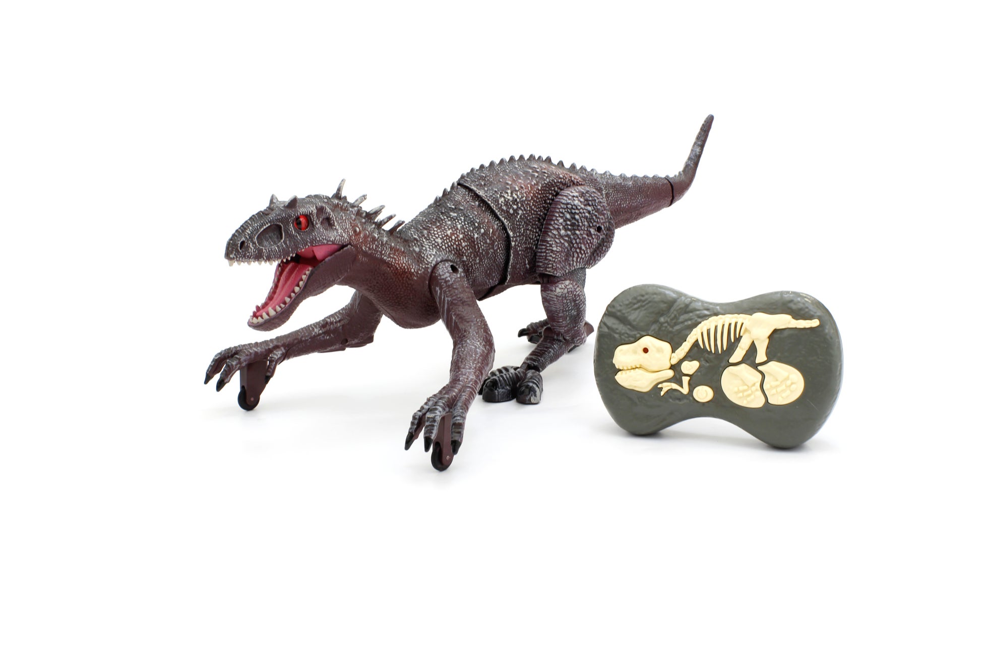 2.4GHzのコントローラーは、何万年も地中深くに眠り続けた「化石」を彷彿させるデザイン。電源を入れると化石の目が光り、鋭い眼力で存在感をアピール。コントローラー中央のボタンとバーニング ダイナソー本体の頭頂部には「デモンストレーションボタン」を装備。