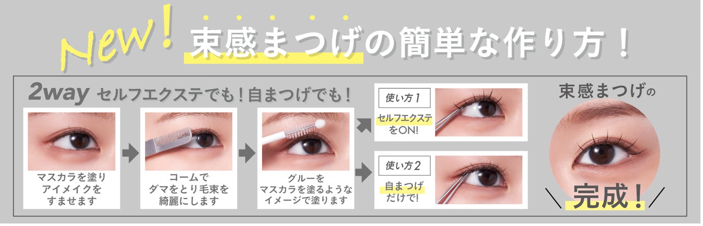 1stepで部分用つけまつげが付けられる、日本市場初の「マスカラグルー&リムーバー」など、思いのままに束感まつげを自由に楽しめちゃう!束感まつげに特化したアイテムが続々新発売!